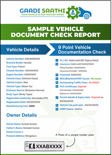 A complete 9-point document check with Your Vehicle Number —fast and accurate.